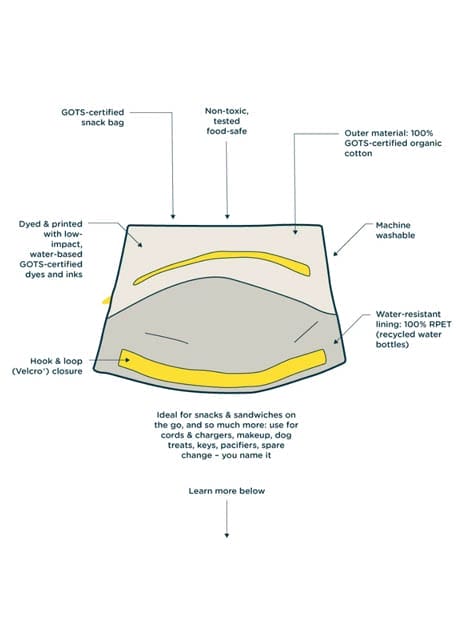 De Fluf Snack Sack is een handige, herbruikbare snackzak of boterhamzak van biologisch katoen.