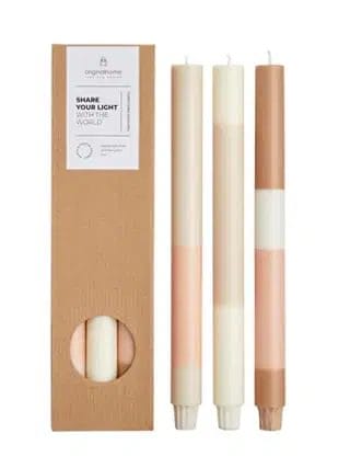 De Layered Candles Long zijn 100% natuurlijk, milieuvriendelijk en met de hand gemaakt van gecertificeerde palmpitolie. De kaarsen zijn geurloos en met de hand gegoten. Elke aankoop steunt een bijzonder fairtradeproject in Java, Indonesië. De Candle Long is verkrijgbaar in veel verschillende kleuren en brandt 18-20 uur. Volg de onderhoudsinstructies voor optimaal gebruik. Set van drie kaarsen.
