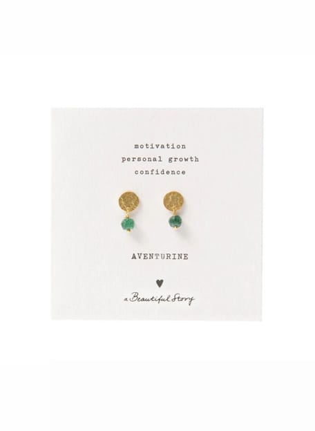 Deze Mini Coin Aventurijn Vergulde Oorbellen van A Beautiful Story zijn kleine oorknopjes met een lengte van 1,5 centimeter. De handgemaakte knopjes hebben een goudkleurig muntje en een kleine aventurijn edelsteen.