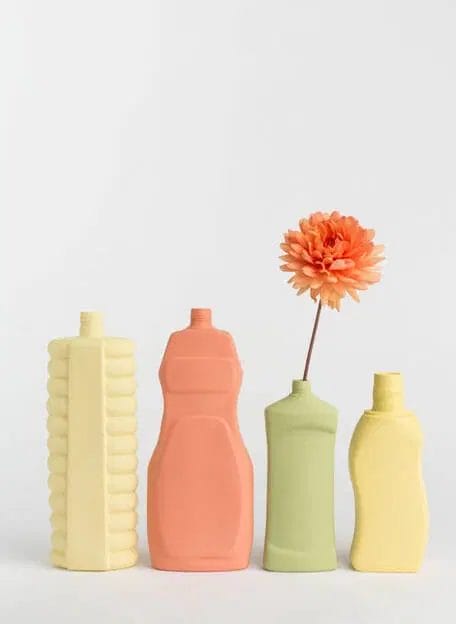 Flessenvazen zijn geïnspireerd op een verzameling plastic afval uit de Maas in Rotterdam. Na het lezen over plastic soep, begon Foekje zorgvuldiger te kijken naar de rivier die door haar geboortestad stroomde en vond plastic afval dat zich daar sinds de jaren zestig had opgehoopt. Door duurzame porseleinen kopieën te maken van het materiaal dat Foekje vind, probeer ze het bewustzijn van dit groeiende probleem te verspreiden.